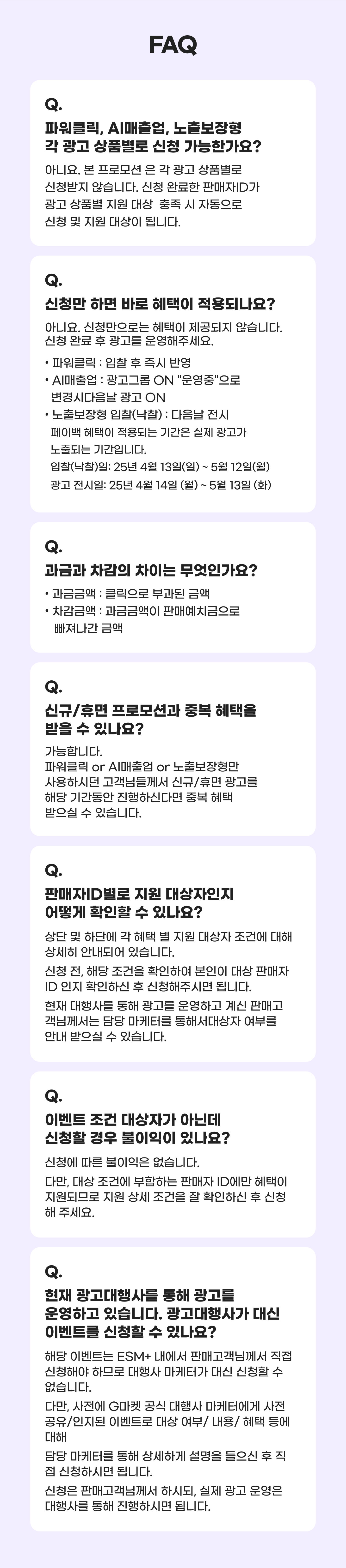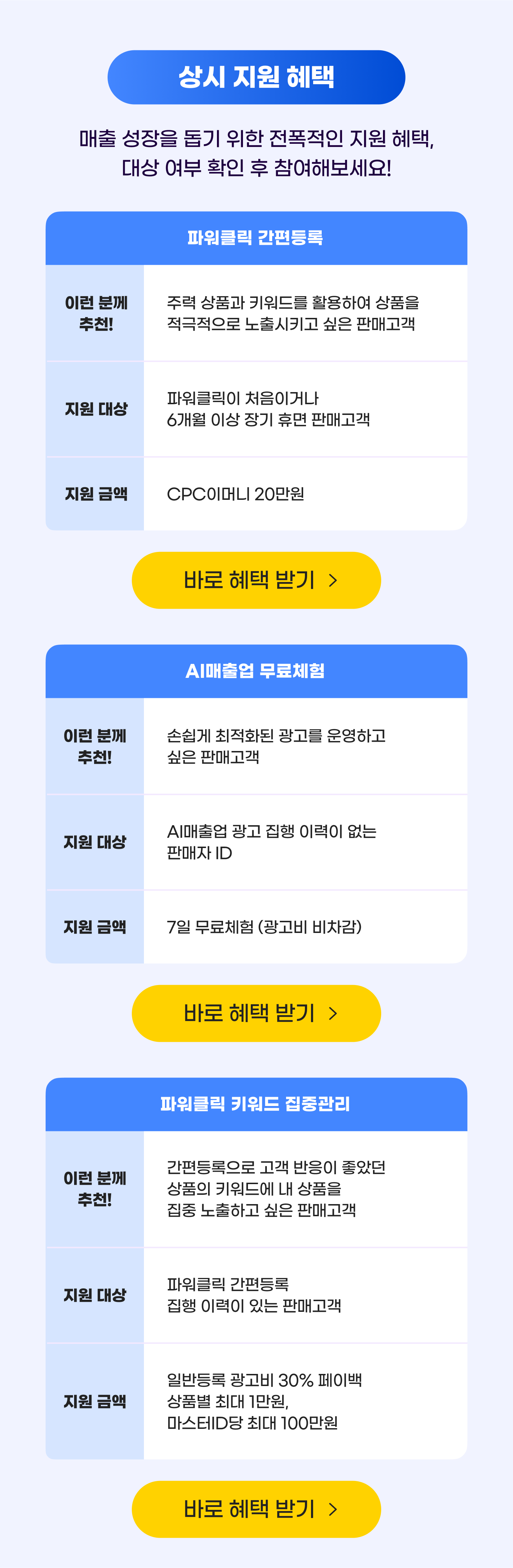 | 지원 대상 | 파워클릭 간편등록 집행 이력이 있는 판매고객 | |